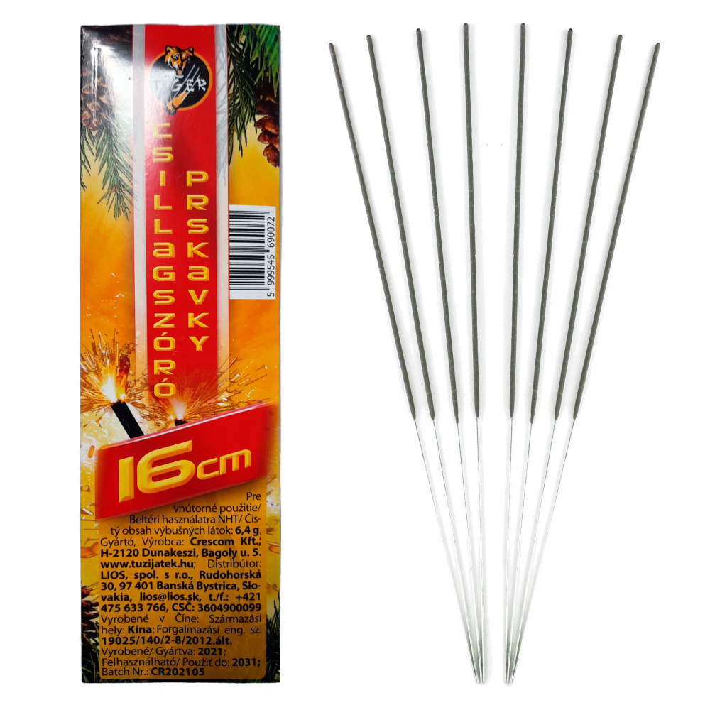Prskavky v tvrdenom papierovom obale. Dĺžka 16cm. Balenie obsahuje 8ks.