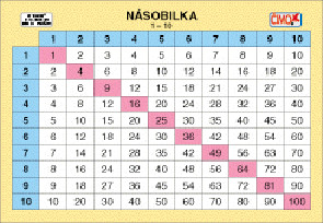 učebná pomôcka určená pre žiakov základných, kartička obsahuje malú a veľkú násobilku