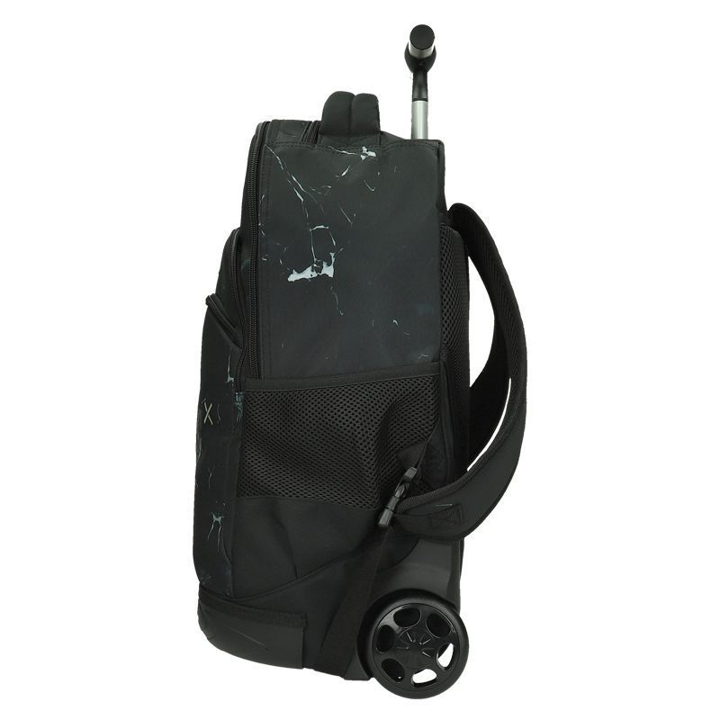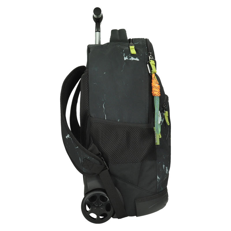 Ergonomická, pohodlná vysúvacia rúčka, vďaka ktorej možno batoh tlačiť pred sebou, alebo ho ťahať za sebou. Batoh je na spodku vybavený tichými kolieskami.