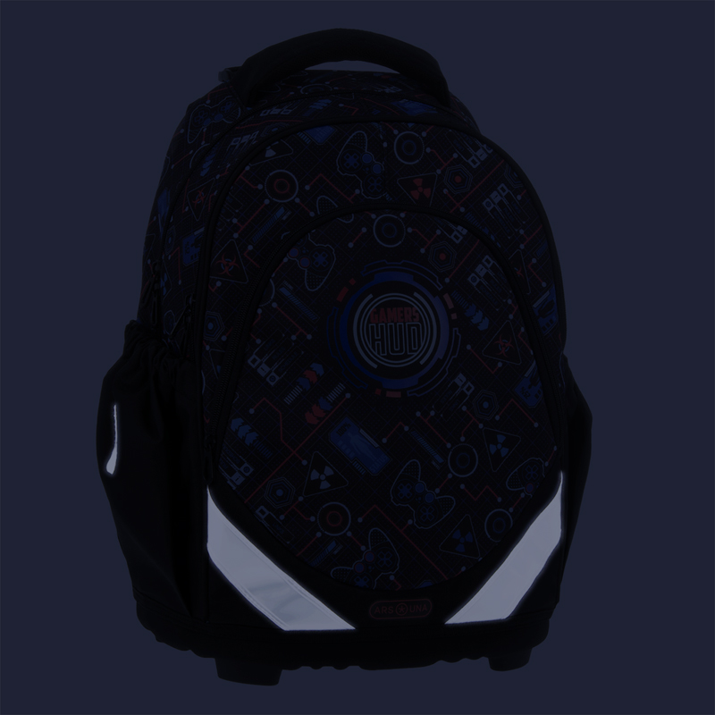 Reflexné pásiky vpredu, na bokoch aj na ramenách sú najmä pre maximálnu bezpečnosť dieťaťa v zlých podmienkach viditeľnosti. Školská taška je vyrobená z vodotesného materiálu.
