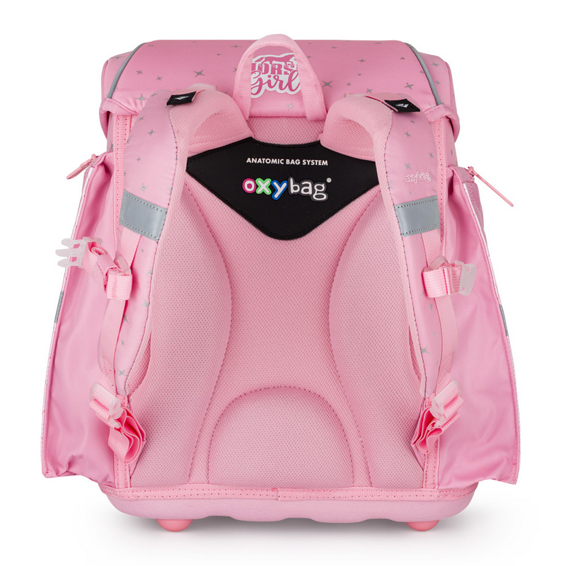 Školská aktovka Premium pre dievčatá je vhodná i pre drobnejšie prváčky. Aktovky OXYBAG sú výnimočné svojimi originálnymi licenčnými a nelicenčnými motívmi a prvákom na chrbte pekne sedia. Majú anatomicky tvarovaný chrbát a širšie mäkké polstrované ramenné popruhy, ktoré sú tvarovo prispôsobené postave detí. Popruhy tak lepšie sedia k ramenám a pomôžu ich rovnomerne zaťažiť. Polstrovanie zadnej časti je z príjemného priedušného materiálu a svojím tvarom umožňuje dostatočné odvetrávanie. Dieťa se tak pod batohom len tak nespotí. Bezpečnosť detí je podporená reflexnými prvkami zo všetkých strán vrátanie reflexného prvku na uzatváraní školskej tašky.