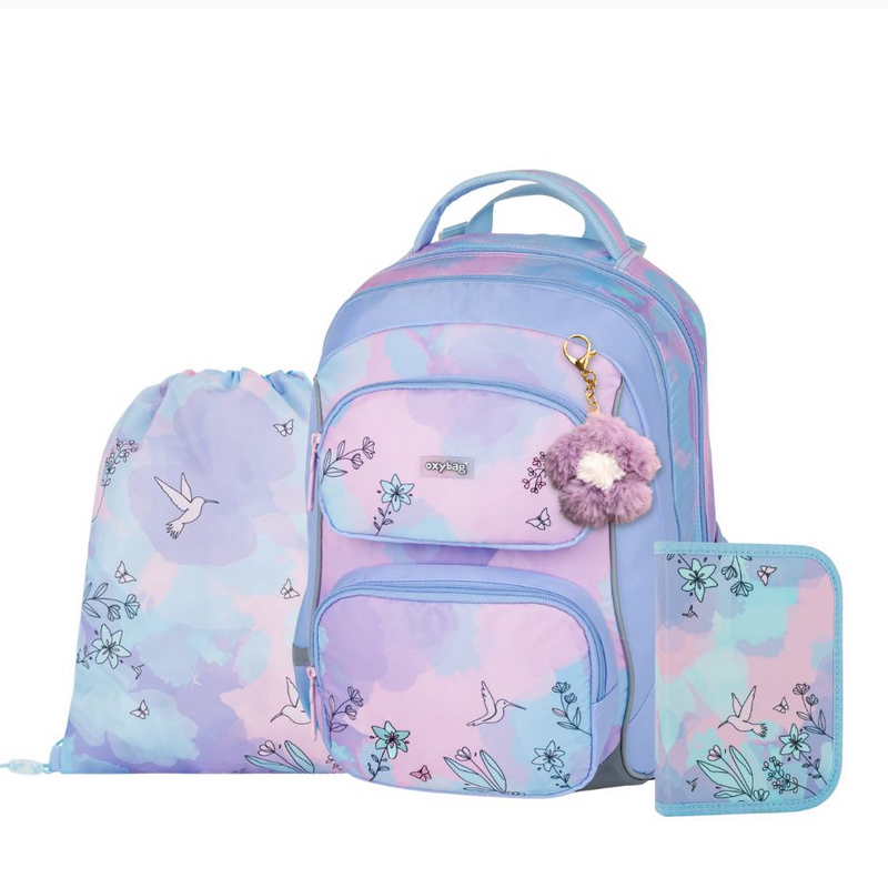 Školský set – Batoh, peračník a vrecko oxybag určený dievčatám a chlapcom vo veku 6 -10 rokov, teda prvého stupňa základnej školy od výšky 125 cm. Ponúka kvalitný priestor na školské potreby aj odľahčenú konštrukciu pre pohodlnejšie nosenie. Vďaka špeciálnemu materiálu váži taška len 990 gramov.