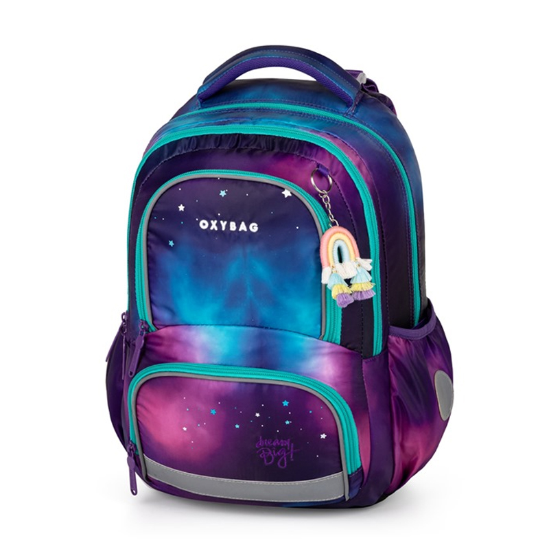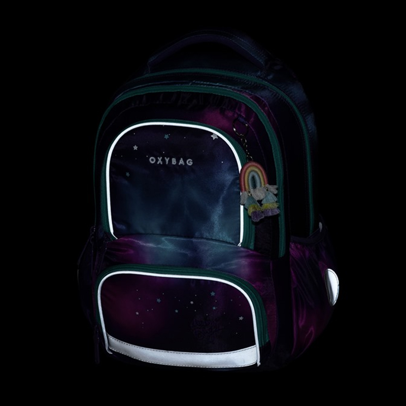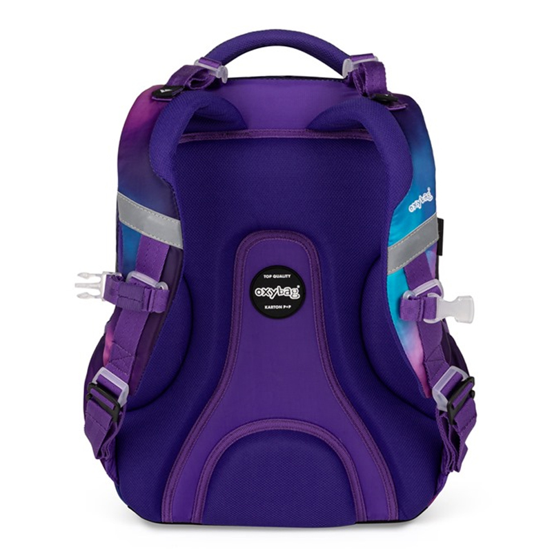 Školský set – Školský batoh OXY NEXT je ako už aj názov ukazuje batohom tzv. po aktovke. Ideálný je pre deti od 2.-3.triedy ZŠ. Pri výberu záleží na výšku dieťaťa, doporučujeme pre deti s výškou 128cm. Disponuje anatomicky tvarovaným chrbtovým systémom, polstrovanými popruhmi, hrudním popruhom, hromadou reflexných prvkov a viacerími praktickými kapsami pre všetko, čo vaše dieťa potrebuje. Dno batohu je vybavený nepremokavím materiálom a 4 gumovými nožkami. Rozmer: 42x32x16cm. Hmotnosť: 800g.
