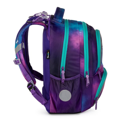 Perfektný tvar batohu ukrýva nielen anatomicky tvarovaný a priedušný chrbát, ale aj možnosť nastaviť si ramenné popruhy pre lepšie pohodlie a komfortnejšie nosenie. Dve vnútorné vrecká ponúkajú dostatok priestoru pre učebnice, zošity aj veci na voľný čas. Pevné dno zabraňuje ako ušpineniu zvonku, tak pretečeniu čohokoľvek, čo sa vyleje vo vnútri. Po stranách nájdete dve väčšie vrecká. Nech už vaše dieťa bude v batohu nosiť čokoľvek, nič sa mu v ňom nestratí, batoh totiž ponúka veľkorysé množstvo najrôznejších vreciek, či už veľkých alebo aj malých.