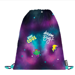 Vrecko sa sťahuje pomocou šnúrok, ktoré vedú cez celú zadnú časť a dá sa nosiť na chrbte alebo na ramene. Je vhodné na prezuvky alebo aj na oblečenie na telesnú výchovu alebo na každodenné nosenie. Rozmer vrecúška: 43 x 45 cm.