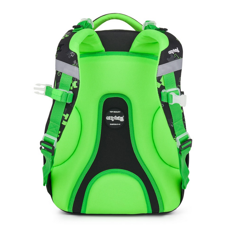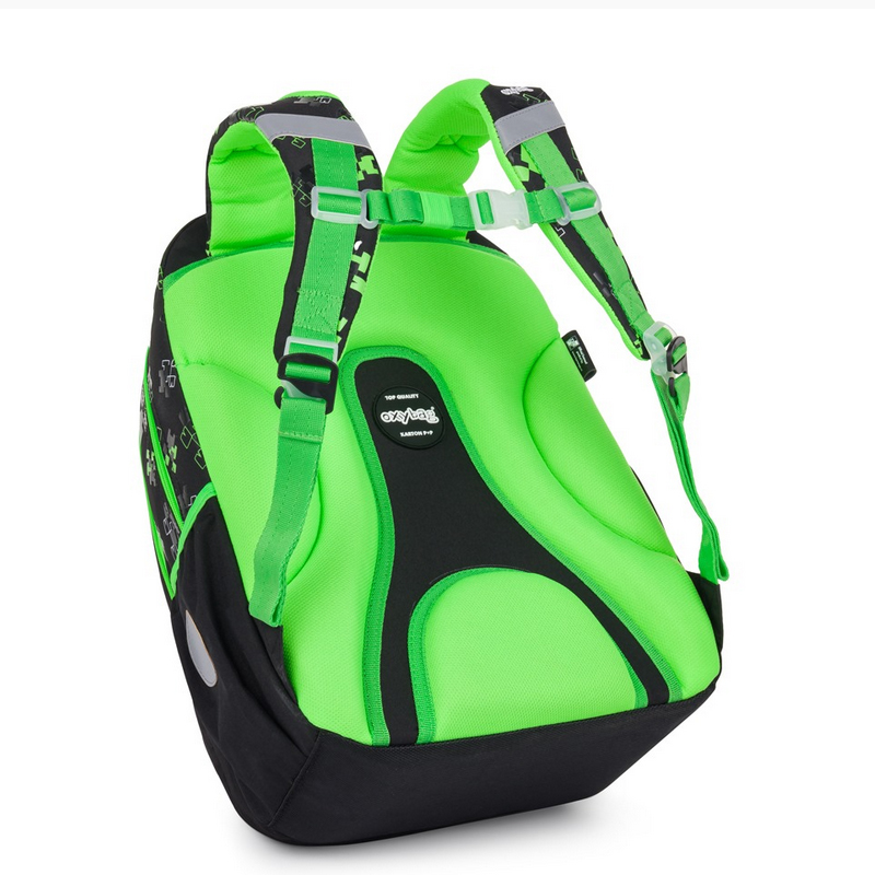 Školský set – Školský batoh OXY NEXT je ako už aj názov ukazuje batohom tzv. po aktovke. Ideálný je pre deti od 2.-3.triedy ZŠ. Pri výberu záleží na výšku dieťaťa, doporučujeme pre deti s výškou 128cm. Disponuje anatomicky tvarovaným chrbtovým systémom, polstrovanými popruhmi, hrudním popruhom, hromadou reflexných prvkov a viacerími praktickými kapsami pre všetko, čo vaše dieťa potrebuje. Dno batohu je vybavený nepremokavím materiálom a 4 gumovými nožkami. Rozmer: 42x32x16cm. Hmotnosť: 800g.