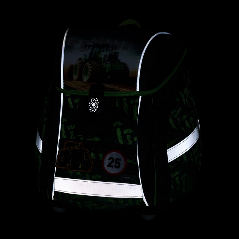 Reflexné pásiky vpredu, na bokoch aj na ramenách sú najmä pre maximálnu bezpečnosť dieťaťa v zlých podmienkach viditeľnosti. Školská taška je vyrobená z vodotesného materiálu.