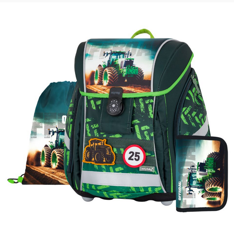 Školský set – aktovka, peračník a vrecko oxybag určený dievčatám a chlapcom vo veku 6 -10 rokov, teda prvého stupňa základnej školy, pre deti od výšky 121cm. Ponúka kvalitný priestor na školské potreby aj odľahčenú konštrukciu pre pohodlnejšie nosenie. Vďaka špeciálnemu materiálu váži taška menej ako 970 gramov.