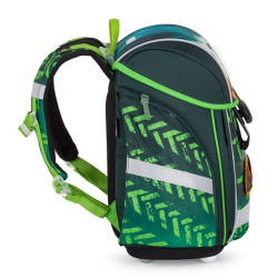 Skladá sa z 1 veľkej komory, kam sa pohodlne zmestia všetky školské potreby pre deti 1. stupňa ZŠ. Na bokoch batohu sú vrecká na zips na fľašu na pitie. Dno batohu je z pevného materiálu, chráni tým obsah pred prevrhnutím a vysypaním. Nosnosť batohu je 8kg. Objem: 27L. Rozmery: