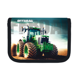 Prázdny jednoduchý peračník s jednou klopou,s gumovými úchytmi na ceruzky a perá, vreckom na suchý zips vhodným na peniaze, gumu a prepážkou s priehľadnou fóliou a rozvrhom hodín.