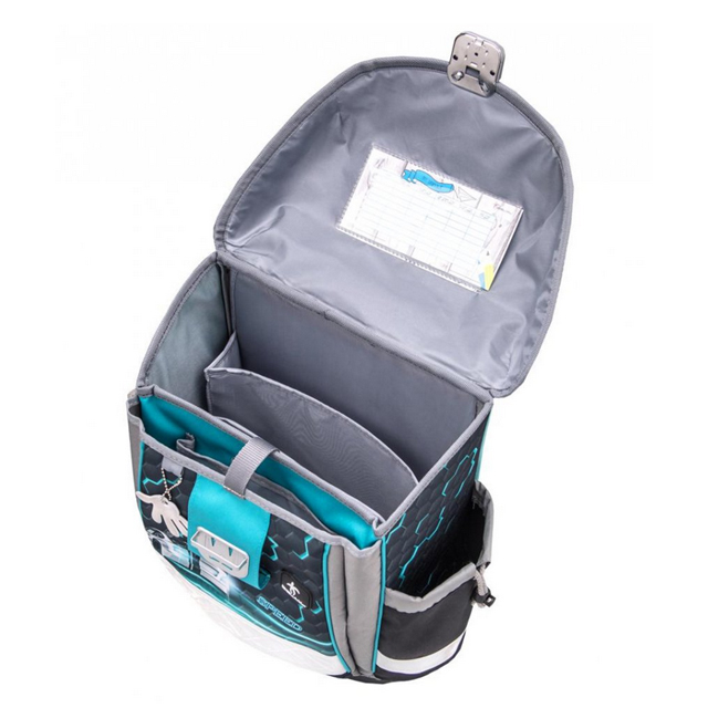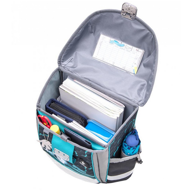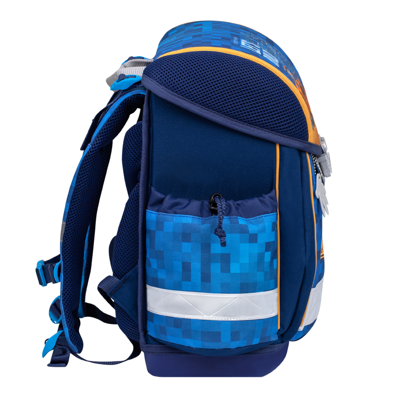 Reflexné pásiky vpredu, na bokoch aj na ramenách sú najmä pre maximálnu bezpečnosť dieťaťa v zlých podmienkach viditeľnosti. Školská taška je vyrobená z vodotesného materiálu.