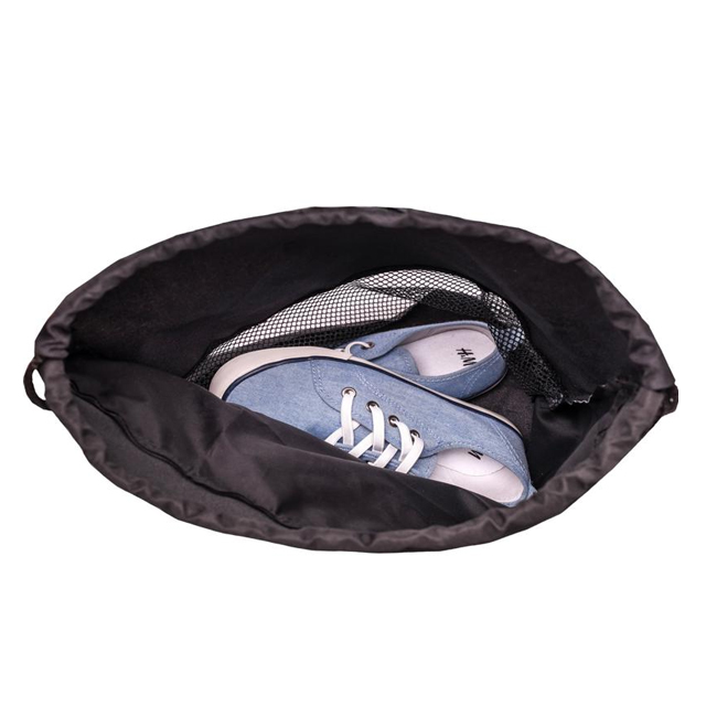 Vrecko sa sťahuje pomocou šnúrok, ktoré vedú cez celú zadnú časť a dá sa nosiť na chrbte alebo na ramene. Je vhodné na prezuvky alebo aj na oblečenie na telesnú výchovu alebo na každodenné nosenie. Rozmer vrecúška: 43 x 45 cm.