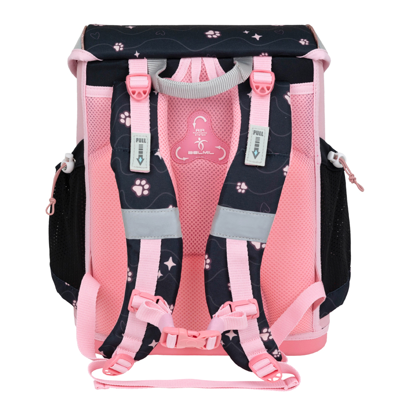 Školská taška váži iba 1 kg. Lisovaná chrbtová časť tašky je anatomicky tvarovaná. Taška má tiež špeciálny sieťovaný materiál pre maximálne vetranie na chrbte a nastaviteľné popruhy na ramená so silným polstrovaním pre pohodlné nosenie. Spolu s ergonomicky tvarovanými hrudnými popruhmi, ktoré sa dajú utiahnuť v hornej aj spodnej časti, zaistia správne nosenie na chrbte školáka aj pri dennom náklade niekoľkých kíl učenia. Okrem toho, taška Belmil je výrazná tým, že zahŕňa zosilnené dno ruksaku s nožičkami pre stabilitu pri postavení na zem.