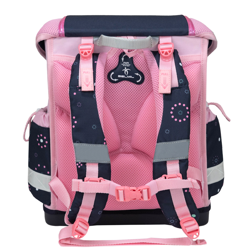 Školská taška váži iba 1 kg. Lisovaná chrbtová časť tašky je anatomicky tvarovaná. Taška má tiež špeciálny sieťovaný materiál pre maximálne vetranie na chrbte a nastaviteľné popruhy na ramená so silným polstrovaním pre pohodlné nosenie. Spolu s ergonomicky tvarovanými hrudnými popruhmi, ktoré sa dajú utiahnuť v hornej aj spodnej časti, zaistia správne nosenie na chrbte školáka aj pri dennom náklade niekoľkých kíl učenia. Okrem toho, taška Belmil je výrazná tým, že zahŕňa zosilnené dno ruksaku s nožičkami pre stabilitu pri postavení na zem.