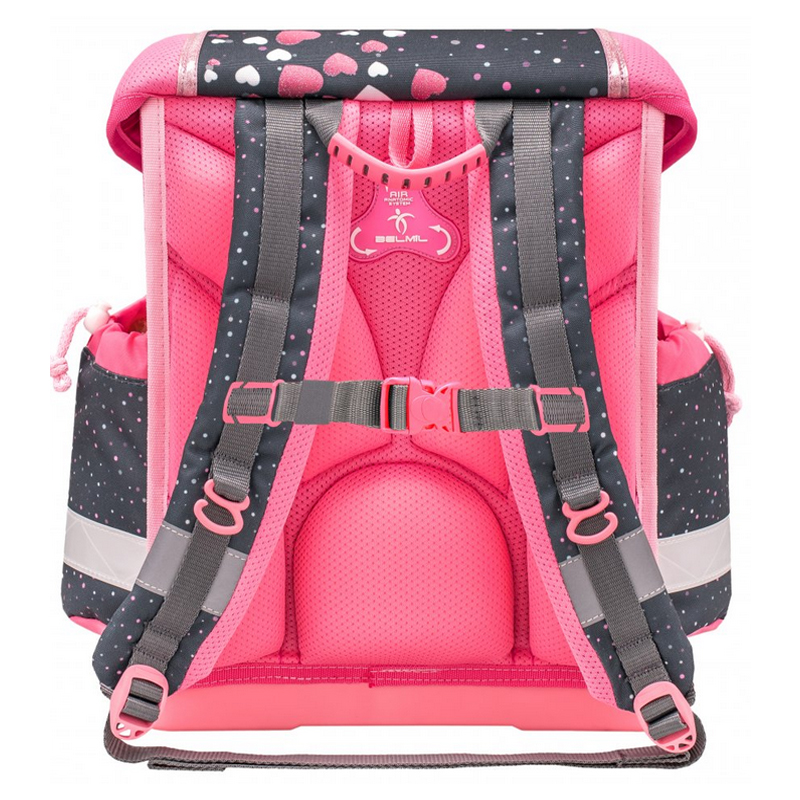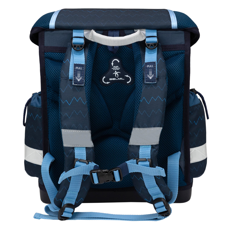 Školská taška váži iba 1 kg. Lisovaná chrbtová časť tašky je anatomicky tvarovaná. Taška má tiež špeciálny sieťovaný materiál pre maximálne vetranie na chrbte a nastaviteľné popruhy na ramená so silným polstrovaním pre pohodlné nosenie. Spolu s ergonomicky tvarovanými hrudnými popruhmi, ktoré sa dajú utiahnuť v hornej aj spodnej časti, zaistia správne nosenie na chrbte školáka aj pri dennom náklade niekoľkých kíl učenia. Okrem toho, taška Belmil je výrazná tým, že zahŕňa zosilnené dno ruksaku s nožičkami pre stabilitu pri postavení na zem.