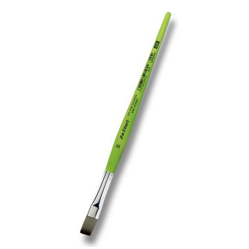 Univerzálny plochý štetec Da Vinci je určený pre školské, hobby a umelecké práce. Je ideálny pre maľovanie temperovými, akvarelovými, akrylovými a olejovými farbami. Vlastnosti: - veľmi elastické šedé syntetické štetiny - maľovanie aj na maliarske plátno - zelená matná rukoväť so špeciálnou povrchovou štruktúrou - bezšvíkové strieborné kovanie - rôzne veľkosti - garancia kvality