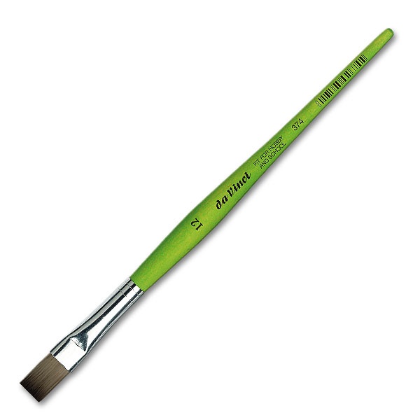 Univerzálny plochý štetec Da Vinci je určený pre školské, hobby a umelecké práce. Je ideálny pre maľovanie temperovými, akvarelovými, akrylovými a olejovými farbami. Vlastnosti: - veľmi elastické šedé syntetické štetiny - maľovanie aj na maliarske plátno - zelená matná rukoväť so špeciálnou povrchovou štruktúrou - bezšvíkové strieborné kovanie - rôzne veľkosti - garancia kvality