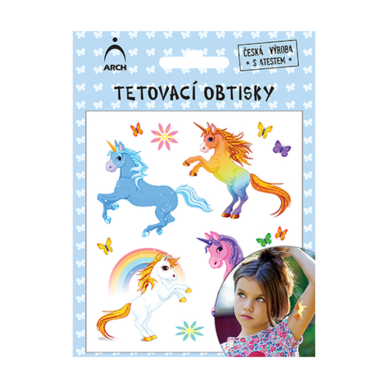 Ozdobte si svoje telo a použite dočasné tetovanie. Detské tetovanie jednorožce vydržia na koži 3-5 dní, je veľmi elastické a odolné proti sprchovaniu, mydlu a morskej vode. Nedráždi kožu, dobre drží. Dočasné tetovanie je dermatologicky testované. Rozmery: 11 x 14 cm.