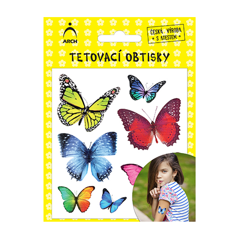 Ozdobte si svoje telo a použite dočasné tetovanie. Detské tetovanie motýlikovia vydržia na koži 3-5 dní, je veľmi elastické a odolné proti sprchovaniu, mydlu a morskej vode. Nedráždi kožu, dobre drží. Dočasné tetovanie je dermatologicky testované. Rozmery: 11 x 14 cm.