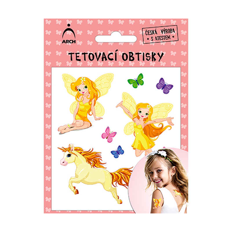 Ozdobte si svoje telo a použite dočasné tetovanie. Detské tetovanie víly vydrží na koži 3-5 dní, je veľmi elastické a odolné proti sprchovaniu, mydlu a morskej vode. Nedráždi kožu, dobre drží. Dočasné tetovanie je dermatologicky testované. Rozmery: 11 x 14 cm.