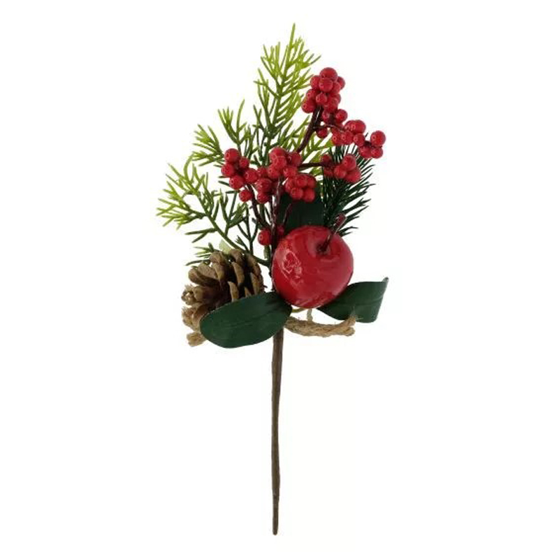 Umelá vetvička s jablkom, s bobuľami a šiškami oživí jesenný a zimný aranžmán. Môžete ju zakomponovať do kvetinových väzieb, vencov alebo kvetináčov. Rozmer: dĺžka 25cm.