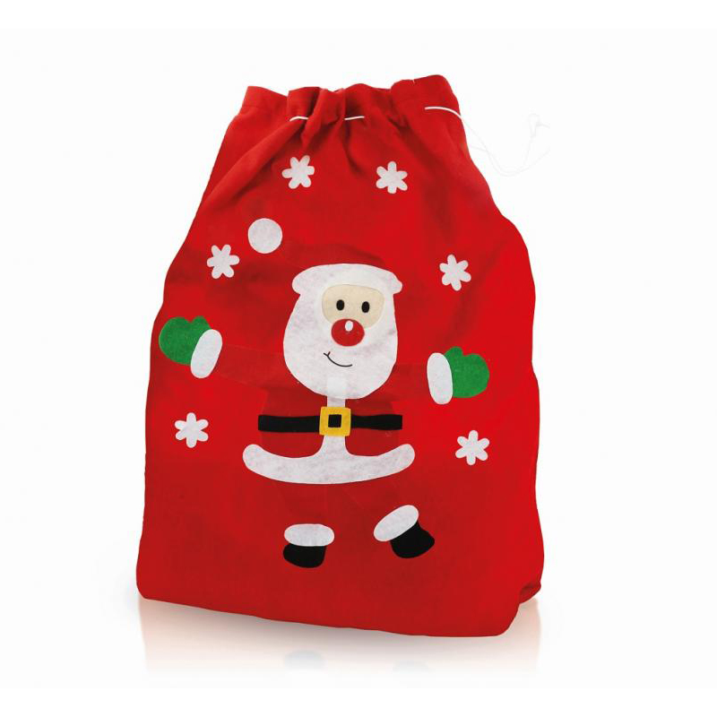 Mikulášske vrece látkové so Santom a snehom Mikulášske vrece si získa srdcia všetkých detí. Farba červená, na prednej strane ho zdobí roztomilý mikuláš. Rozmer 50x70 cm. Balené po 10ks, cena za 1ks.