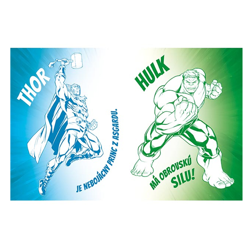 Obsahuje 24 obrázkov na vyfarbenie a 60 farebných tetovačiek, formát A4.Motív: Marvel