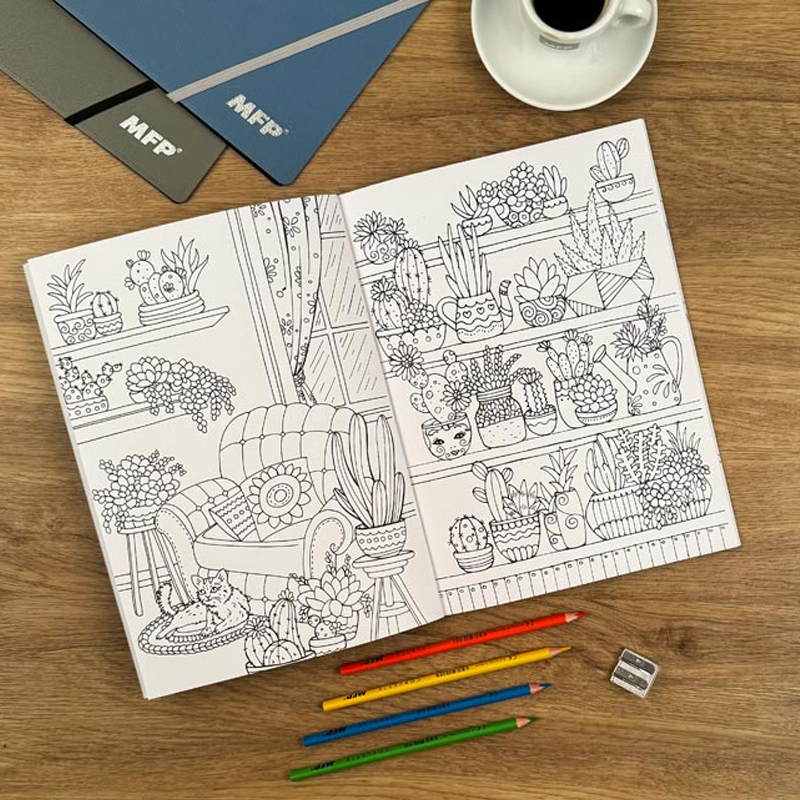 Vymaľovánka antistresová, rozmery: 21x29 cm, motív: Kaktusy a sukulenty