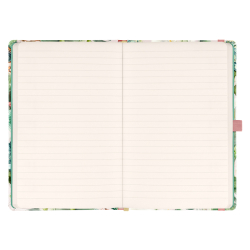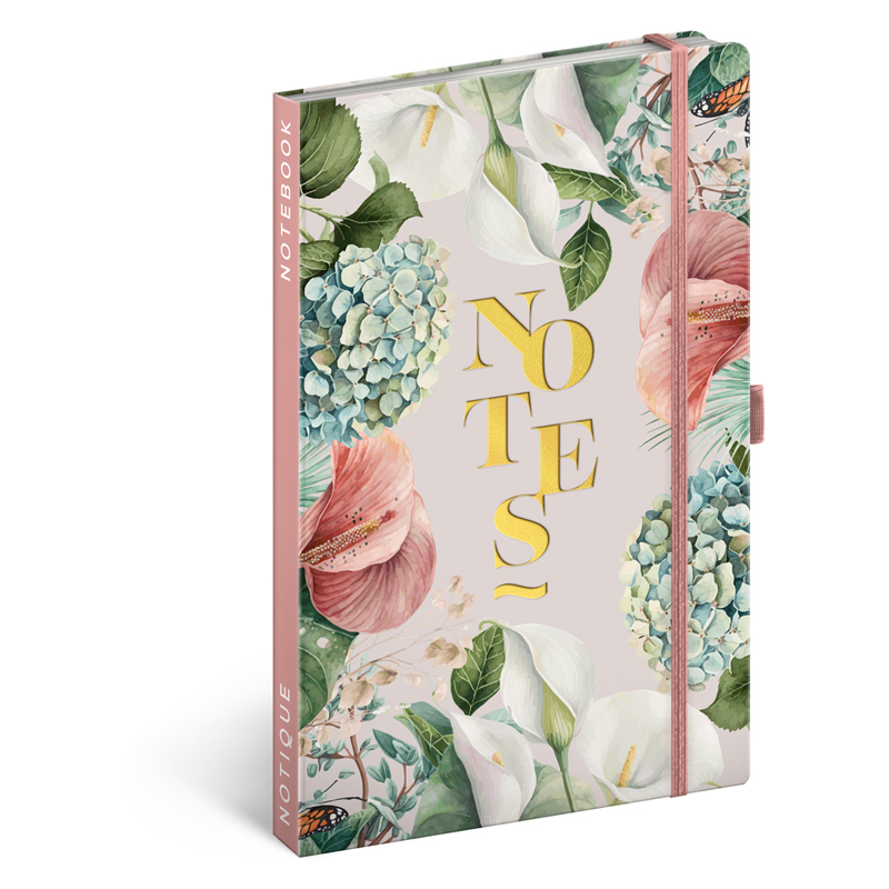 Linajkový notes v tvrdých doskách so zatváraním na gumičku a s motívom nežných kvetín. Kvalitný linajkový notes v pevných doskách s uzatváraním na gumičku, pútkom na ceruzku a vnútorným vreckom na drobnosti. Vo vnútri nájdete 172 bodkovaných strán na žltom papieri na zapisovanie všetkých vašich nápadov. Linajkový zápisník môžete použiť ako denník, na zapisovanie hlbokých myšlienok alebo pracovných poznámok. Väzba: tuhá knižná s gumičkou a pútkom na ceruzku. Rozmer: 13x21 cm. Počet strán: 172.