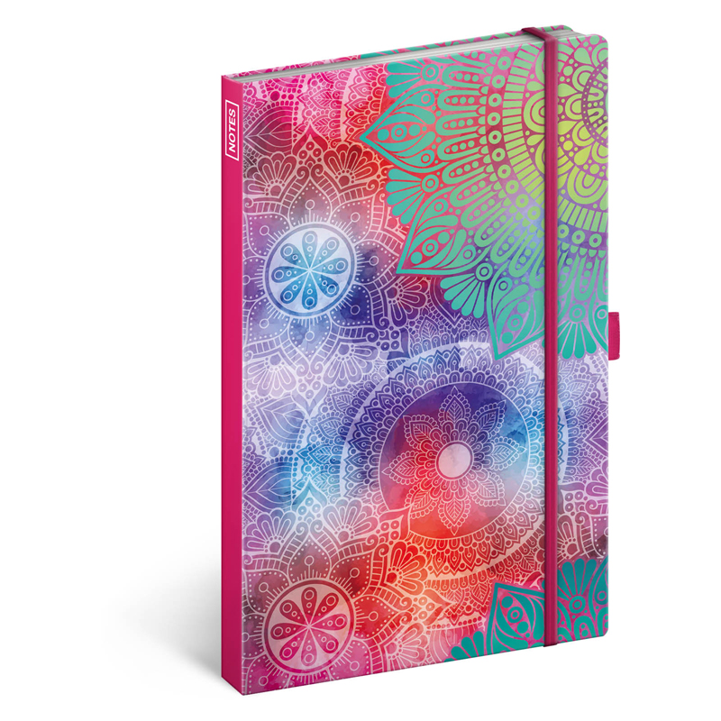 Linajkovaný zápisník pre všetkých, ktorí veria moci mandaly. Linajkovaný notes v pevných doskách s uzatváraním na gumičku, pútkom na pero a vnútornou kapsou na navštívenky. Linajkovaný zápisník môžete použiť ako denník, písať si doňho hlboké myšlienky alebo pracovné poznámky. Väzba: tuhá knižná s gumičkou a pútkom na ceruzku. Rozmer: 13x21 cm. Počet strán: 172.