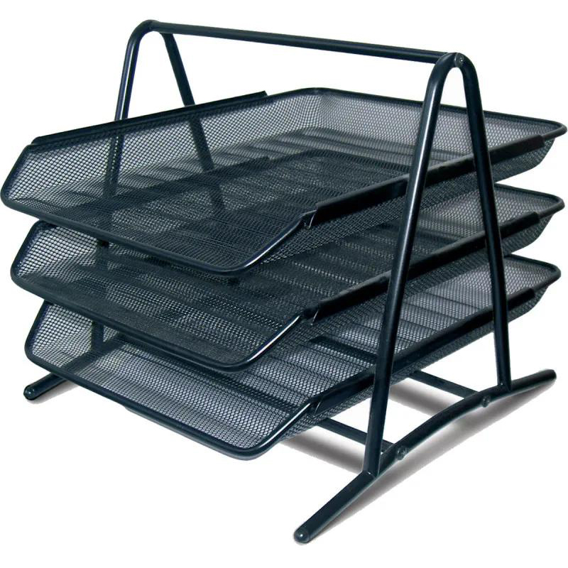 Zásuvka trojdielna na dokumenty je čiernej farby, vyrobená z kvalitného drôtu. Hrany police sú zaoblené a vzhľadom sa hodí do každého priestoru. Je určená pre dokumenty formátu A4. Obsahuje tri samostatné úrovne a ľahko sa skladá. Rozmery police 34 x 27 x 3 cm.Výškový rozdiel medzi policami je 26,5 cm.