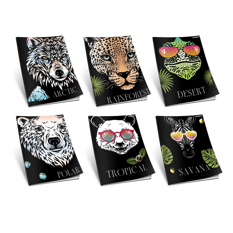 Zošit čistý, 52listov. Obálka s matnou lamináciou a lokálnym UV lakom. Vnútro: 80 g papier. Kolekcia pozostáva zo 6 rôznych motívov. Motív nie je môžné vybrať, variantu vyberáme náhodne podľa skladovej dostupnosti.