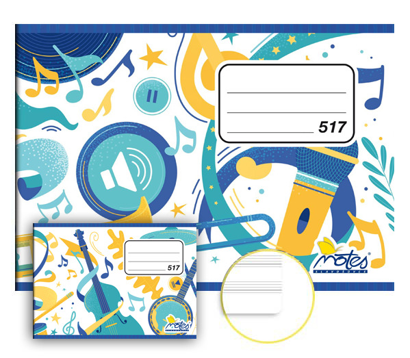 Školské zošity formát A5 z bezdrevného papiera, mäkká väzba, 8 listov s notovou osnovou.