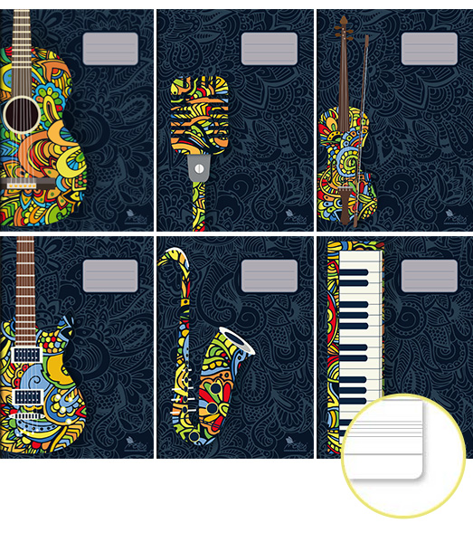 Školské zošity formát A4 z bezdrevného papiera, mäkká väzba, 20 listov s notovou osnovou.